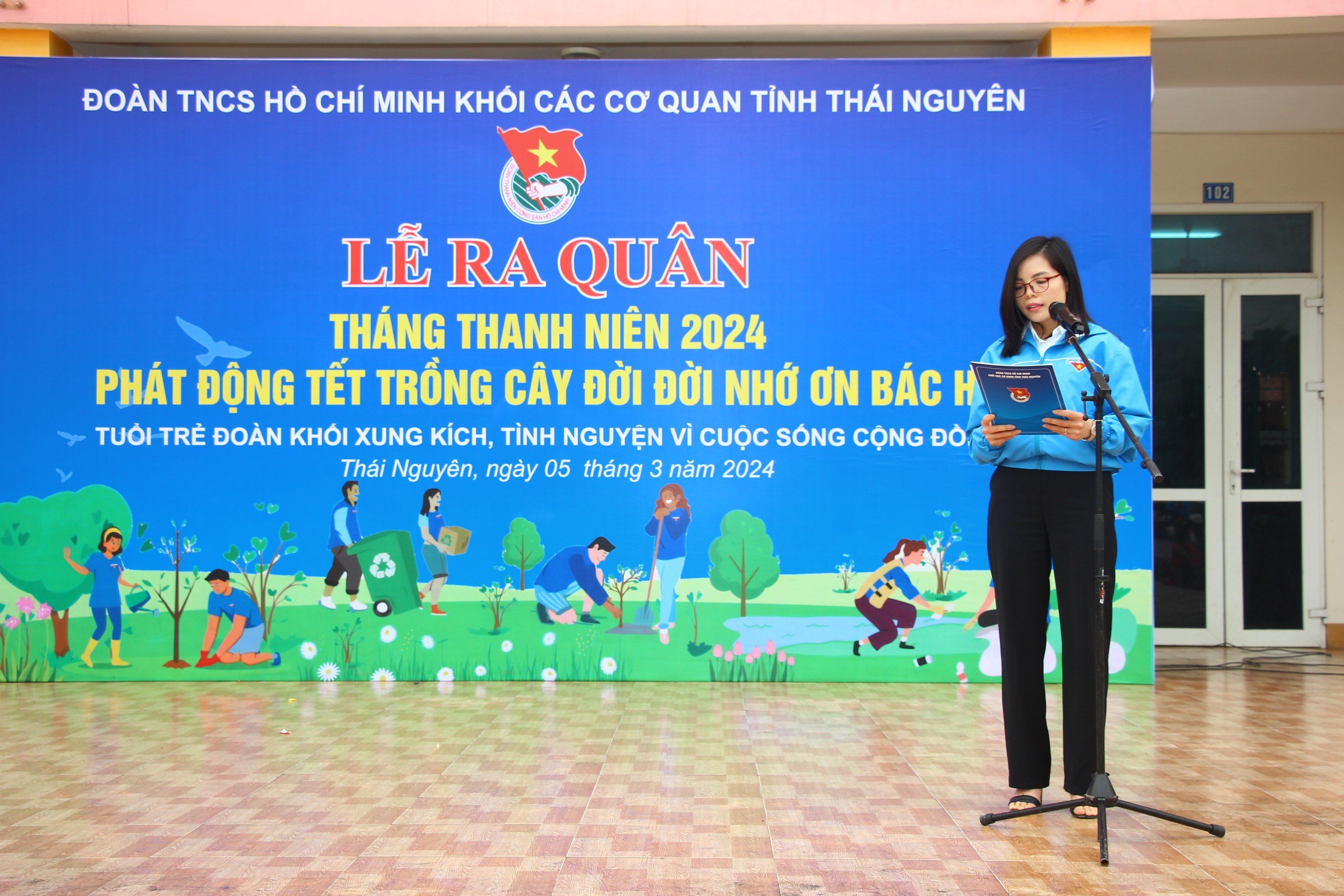 Hình ảnh: Bí thư Đoàn khối CCQ tỉnh Thái Nguyên phát biểu trong buổi lễ ra quân tháng thanh niên