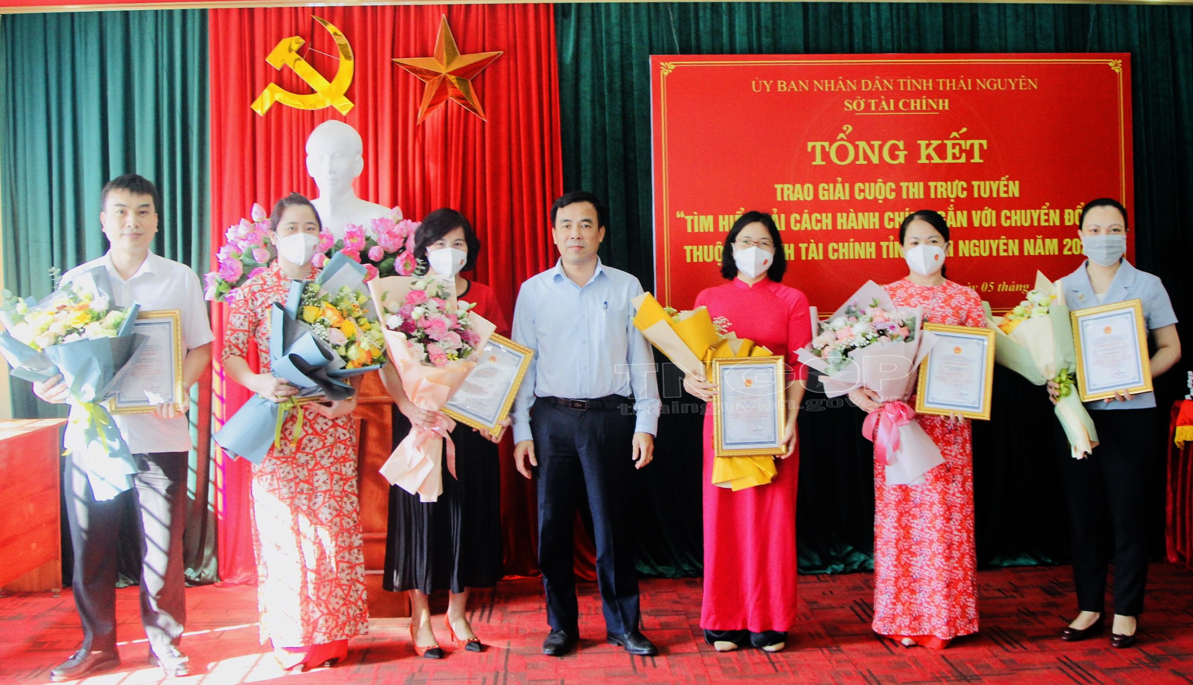 Đồng chí Nguyễn Minh Quang, Bí thư Đảng ủy, Giám đốc Sở Tài chính, Trưởng ban Tổ chức Cuộc thi trao giải cho các tập thể đạt giải tại Cuộc thi trực tuyến “Tìm hiểu về CCHC gắn với Chuyển đổi số Ngành tài chính tỉnh Thái Nguyên năm 2021”
