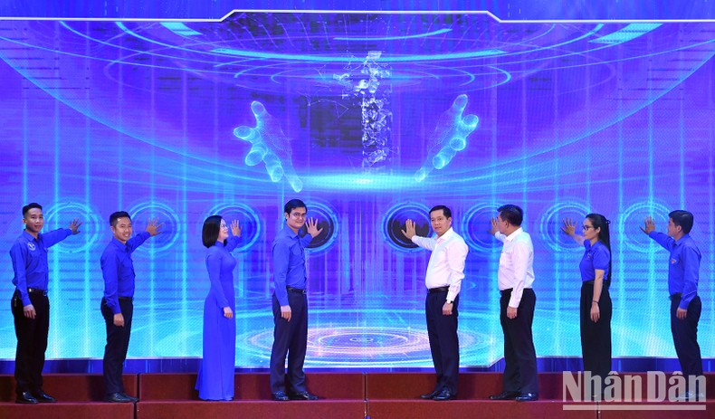 Đại diện lãnh đạo Đảng ủy Khối Doanh nghiệp Trung ương, Trung ương Đoàn và một số cụm thi đua trong Khối thực hiện nghi lễ phát động.