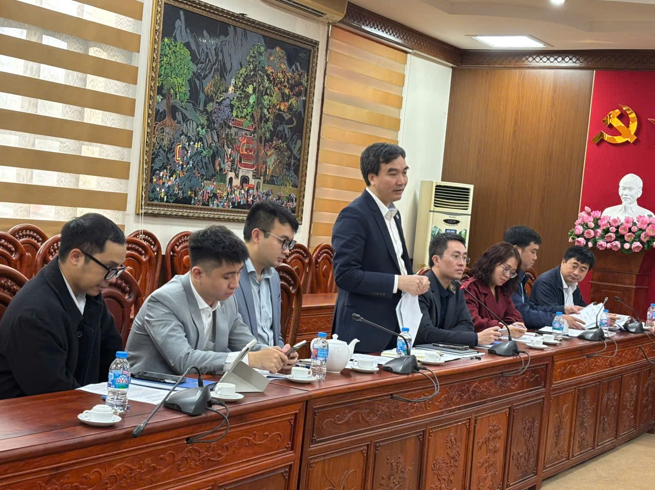 Ảnh: Đoàn công tác của Cục Quản lý Giá - Bộ Tài chính do đồng chí Phạm Văn Bình phó Cục trưởng Cục Quản lý giá làm trưởng đoàn làm việc với các ngành tại Sở Tài chính Thái Nguyên